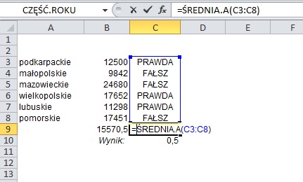 Excel umożliwia też wyliczenia różnego rodzaju średnich – warunkowych (średnia z wartości spełniających dane kryteria), arytmetycznych, geometrycznych, harmonicznych.