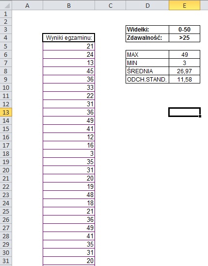 Przejdźmy jeszcze pokrótce przez podstawowe formuły statystyczne Excela.