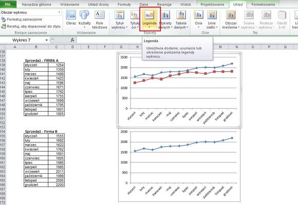 Sugeruję, by po takiej operacji, dodać na wykresie legendę – na zrzucie ekranu możecie zobaczyć, jak szybko to zrobić.