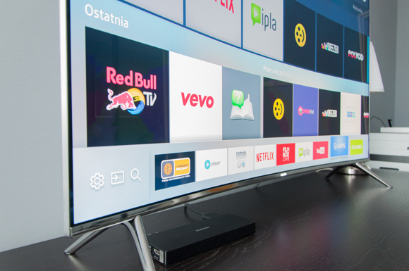 Jako że obsługa telewizora jest ściśle powiązana z „inteligentnymi” funkcjami telewizora, płynnie przechodzimy do części poświęconej Smart TV w telewizorze KS7500. Całkowicie nowy system Tizen, który jest obecnie wdrażany także w starszych modelach telewizorów Samsunga jest przykładem dobrze przemyślanego i równie dokładnie wykonanego systemu. Działa on bardzo szybko, bez spadków wydajności i błędów, z bardzo łatwym dostępem do ustawień telewizora, nie mówiąc już nawet o dostępie do wszelkich aplikacji.