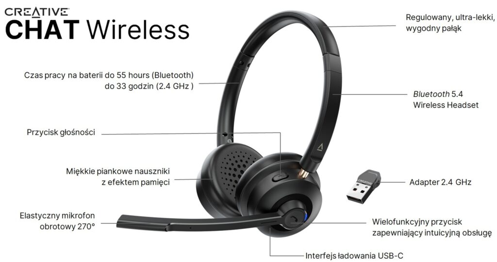 Creative wprowadza do Europy nowy zestaw słuchawkowy CHAT Wireless – trzeci model z serii. Został on zaprojektowany z myślą o wygodnej komunikacji głosowej i pracy przez wiele godzin. Sprzęt kierowany jest do osób pracujących w otwartych przestrzeniach, często korzystających z kilku urządzeń naraz.