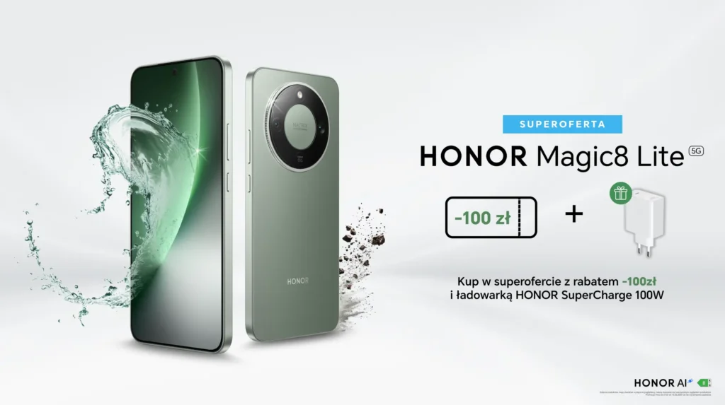 HONOR startuje z czasową promocją na smartfony Magic8 Lite oraz Magic8 Pro, obejmującą rabaty i dodawaną do zestawu ładowarkę HONOR SuperCharge 100W. Oferta obowiązuje do 15 marca i jest dostępna zarówno w oficjalnym sklepie producenta, jak i u największych partnerów handlowych w Polsce. Promocja obejmuje dwa modele skierowane do różnych grup użytkowników, od twórców oczekujących najwyższej jakości zdjęć po osoby stawiające na wytrzymałość i długi czas pracy baterii.