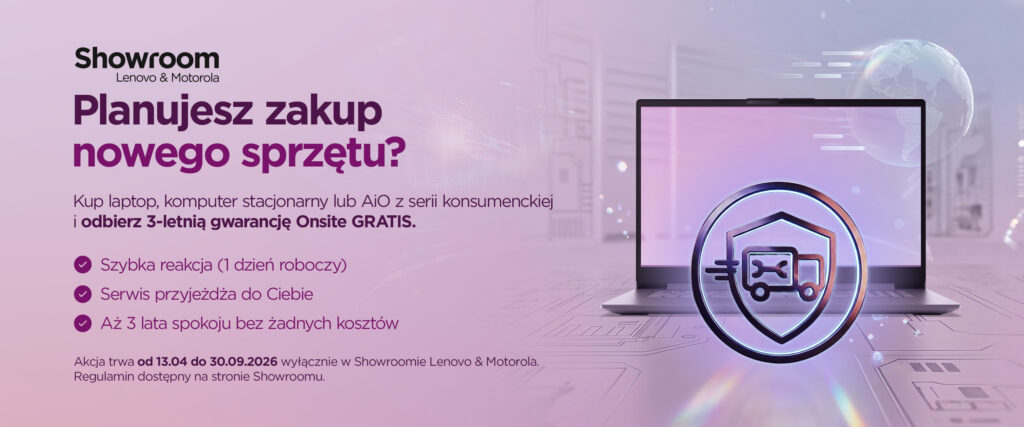 Lenovo uruchomiło promocję, która może realnie zmienić sposób, w jaki Polacy kupują sprzęt komputerowy. Przy zakupie laptopa, komputera stacjonarnego lub AiO w warszawskim Showroomie klienci otrzymują aż 3 lata serwisu Onsite bez dodatkowych kosztów. To oznacza, że ewentualne naprawy i diagnostyka odbywają się w domu lub miejscu pracy użytkownika, co eliminuje przestoje i formalności. W czasach, gdy sprzęt jest kluczowym narzędziem pracy i rozrywki, taka ochrona staje się realną przewagą konkurencyjną.