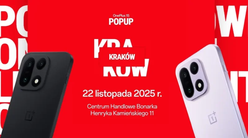 OnePlus organizuje Pop-Up Store w Krakowie po raz pierwszy poza Warszawą. Wydarzenie odbędzie się 22 listopada 2025 o godz. 11:00 w CH Bonarka. Okazją jest premiera najnowszego flagowca OnePlus 15, który będzie dostępny do obejrzenia i wypróbowania na miejscu.