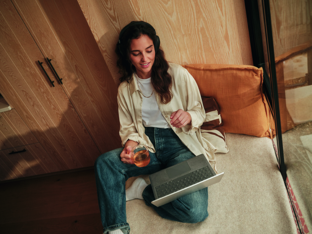 Przede wszystkim podczas rozmów w rozmaitych warunkach panujących w miejscu, w którym aktualnie przebywają. Algorytm działający w nowych słuchawkach pracuje nieprzerwanie i całkowicie automatycznie, bez konieczności włączania czy wyłączania go przez użytkownika. Został wytrenowany w laboratoriach producenta na ogromnych zbiorach danych obejmujących wiele języków, różne barwy głosu i szerokie spektrum hałasów, dzięki czemu potrafi skutecznie rozpoznawać ludzką mowę w każdych warunkach – od open space’u, przez restaurację, po dom pełen dziecięcego gwaru. Poza tym będzie nadal rozwijany dzięki bieżącym aktualizacjom oprogramowania zapewnianych przez Jabra. W efekcie zatarła się granica między sprzętem konsumenckim a profesjonalnym. Nie trzeba już wybierać między słuchawkami z lepszym ANC do samolotu a innymi, które lepiej wyciszają otoczenie podczas wideokonferencji. Jedna para oferuje pełnię możliwości w każdym scenariuszu, bez kompromisów i bez konieczności żonglowania urządzeniami.