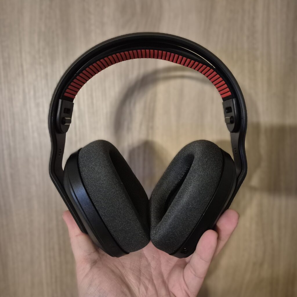 W codziennym użytkowaniu Astro A20 X prezentują się jako sprzęt, który nie próbuje za wszelką cenę imponować wyglądem, lecz stawia na wygodę i przewidywalność. Miękkie pady z materiału o dobrej przepuszczalności powietrza sprawiają, że nawet dłuższe sesje nie kończą się nieprzyjemnym przegrzewaniem uszu. Elastyczny pałąk wywiera natomiast niewielki nacisk na głowę, co docenią osoby spędzające przy komputerze lub konsoli długie, wieczorne godziny. W praktyce czuć, że priorytetem była ergonomia, choć trzeba pamiętać, że materiałowe wykończenia mają swoją cenę w postaci mniejszej izolacji od hałasów otoczenia. Jeśli ktoś lubi mocno odciąć się od świata zewnętrznego, może to być pewien minus.