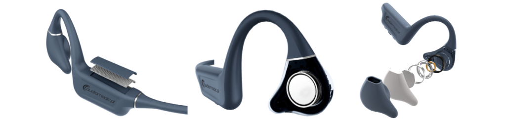 Audiomagic Sport Pro to sprzęt stworzony z myślą o osobach aktywnych, który łączy bezpieczeństwo ze sportowym charakterem dźwięku. Stanowi on nietypową alternatywę dla klasycznych rozwiązań i celuje w użytkowników, którzy nie chcą rezygnować z muzyki podczas wysiłku, ale muszą zachować kontakt z otoczeniem. W opakowaniu, oprócz samego urządzenia, producent umieścił kabel z końcówką magnetyczną służący zarówno do ładowania, jak i przesyłania plików z komputera. Pierwszą cechą rzucającą się w oczy jest brak standardowych przetworników wkładanych do kanału dousznego, dzięki czemu uszy pozostają odsłonięte. Takie rozwiązanie sprawdza się znakomicie podczas joggingu czy jazdy na rowerze, ponieważ pozwala słyszeć nadjeżdżające pojazdy. Warto zaznaczyć, że choć każdy ma inny kształt twarzy, firma Audiomagic zadbała o uniwersalność poprzez możliwość lekkiego zagięcia części grającej w stronę ucha, co znacząco poprawia dopasowanie.