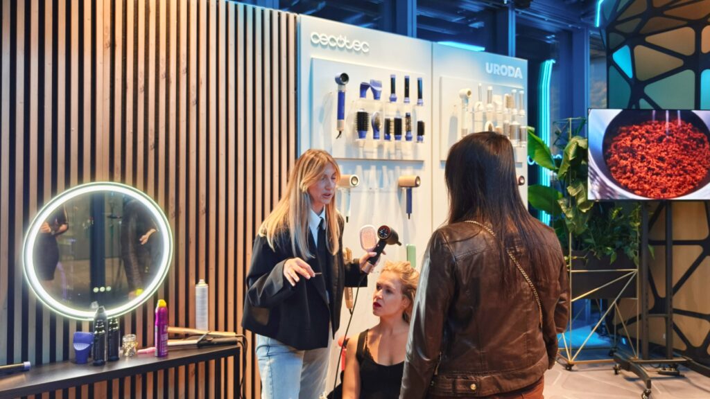 Cecotec pomoże Ci nie tylko zdrowo zjeść i sprawić sobie przyjemność deserem. W towarzystwie ambasadorki marki, zwyciężczyni „Top Model” Klaudii Nieścior można było skorzystać z usług stylizacji włosów nowoczesnymi urządzeniami Cecotec. Niesamowite możliwości układania włosów daje AirGlam – technicznie jest to suszarka, ale może też prostować włosy lub układać luźne loki.