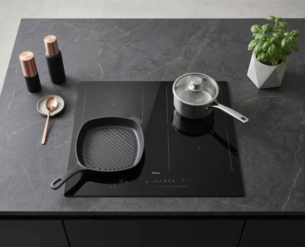 W tej klasie wielu klientów oczekuje już nie tylko „PowerBoosta”, ale też sensownej elastycznej strefy (Bridge/Flex) i choćby szczątkowej automatyki temperatury. Amica odpowiada na to zestawem rozwiązań nazwanych HobControl Pro, AutoBridge, CookAdapt oraz Power Management/PowerChoice Pro – i to one stanowią o charakterze tej konstrukcji.  Warto od razu dodać, że część „magii marketingu” w segmencie płyt indukcyjnych bywa nadpisywaniem standardu nową nazwą. Dlatego kluczowe jest oddzielenie elementów faktycznie wyróżniających (np. programy temperaturowe i sposób ich działania) od rzeczy powszechnych (np. rozpoznawanie obecności garnka), a także sprawdzenie, jak te rozwiązania wypadają liczbowo i funkcjonalnie na tle konkurentów dostępnych w Polsce.