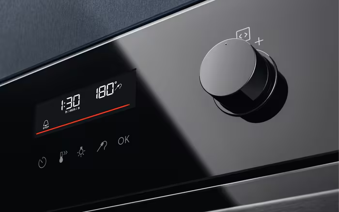 Na tle konkurencji Electrolux wpisuje się w tą półkę cenową hybrydowego sterowania, podobnie jak konkurencja. Bosch w serii 6 stosuje podobne chowane pokrętła i niewielkie wyświetlacze, Samsung często idzie w stronę paneli w pełni dotykowych lub pojedynczego pokrętła wspieranego sensorami, a Whirlpool w serii W Collection oferuje rozbudowane, graficzne interfejsy z czytelnymi ikonami. Różnice sprowadzają się głównie do warstwy wizualnej – funkcjonalnie filozofia obsługi jest zbliżona. Bardziej zaawansowane rozwiązania, takie jak kolorowe wyświetlacze TFT czy pierścienie sterujące znane z Bosch Serie 8, pozostają domeną droższego segmentu. W klasie cenowej około 2300 zł interfejs EOC6H76Z należy jednak do najbardziej nowoczesnych i dopracowanych, wyraźnie dystansując prostsze rozwiązania spotykane w tańszych modelach.