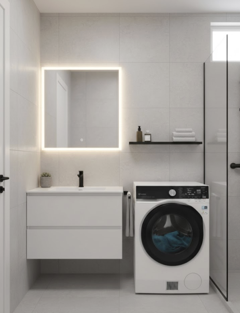 Analiza Electrolux EW9WN161BCE jasno pokazuje, że integracja pełnoprawnego układu pompy ciepła w obudowie pralko-suszarki wymusza istotne kompromisy konstrukcyjne. Masa własna urządzenia wynosząca około 99 kg jest wartością wyraźnie wyższą niż w przypadku klasycznych pralek oraz standardowych pralko-suszarek kondensacyjnych. Wynika to z obecności sprężarki, parownika, skraplacza oraz rozbudowanego układu stabilizującego. Dodatkowe przeciwwagi są niezbędne, aby zapewnić kontrolę drgań przy wirowaniu z prędkością 1600 obr./min, zwłaszcza że ciężkie elementy układu chłodniczego zwiększają masę statyczną korpusu i zmieniają jego środek ciężkości. Wymiary zewnętrzne – 87 cm wysokości, 59,7 cm szerokości oraz 63,6 cm głębokości obudowy – na pierwszy rzut oka mieszczą się w kategorii urządzeń wolnostojących, jednak kluczowe znaczenie ma całkowita głębokość wynosząca około 66 cm po uwzględnieniu elementów wystających. Jeszcze istotniejsza jest wysokość 87 cm, przekraczająca standard 85 cm, co wyraźnie sugeruje, że moduł pompy ciepła został ulokowany w górnej części urządzenia. Z punktu widzenia projektowania kuchni i łazienek jest to parametr krytyczny, ponieważ w wielu zabudowach podblatowych taka wysokość uniemożliwia montaż bez ingerencji w blat, co w praktyce zawęża grupę potencjalnych użytkowników do osób dysponujących wolnostojącą przestrzenią.