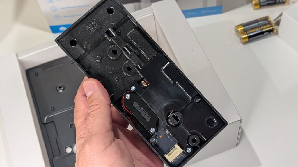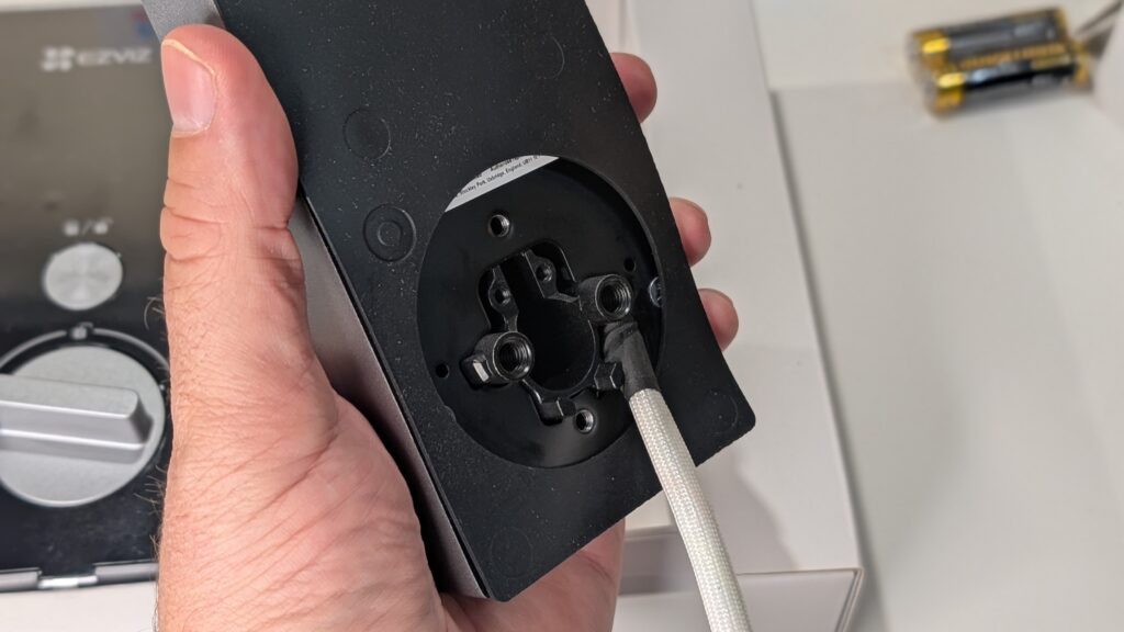 W opakowaniu oprócz EZVIZ DL04 Pro otrzymujemy wszystko to, co będzie nam potrzebne do instalacji rygla, łącznie z szablonem na którym rozrysowane są dokładny rozkład śrub i bateriami do zasilania. Sam montaż zajmuje co najmniej godzinę, więc warto zarezerwować sobie ten czas. Może się okazać, że otwór we framudze nie pasuje do otworów na śruby w drzwiach i wtedy konieczne będzie odpowiednie przygotowanie nawiercenie lub przycięcie ramy. W moim przypadku wszystko się zgadzało, dlatego cały montaż łącznie z demontażem starej zasuwy zajął mi niecałe 45 min. Konstrukcja EZVIZ DL04 Pro cechuje się solidnością i część elementów jest wykonana ze stali, część z tworzywa sztucznego, jednak całość jest dość zwarta i mocno się trzyma drzwi.