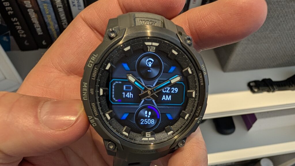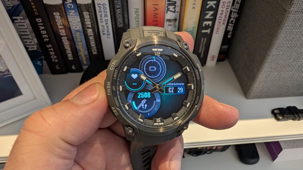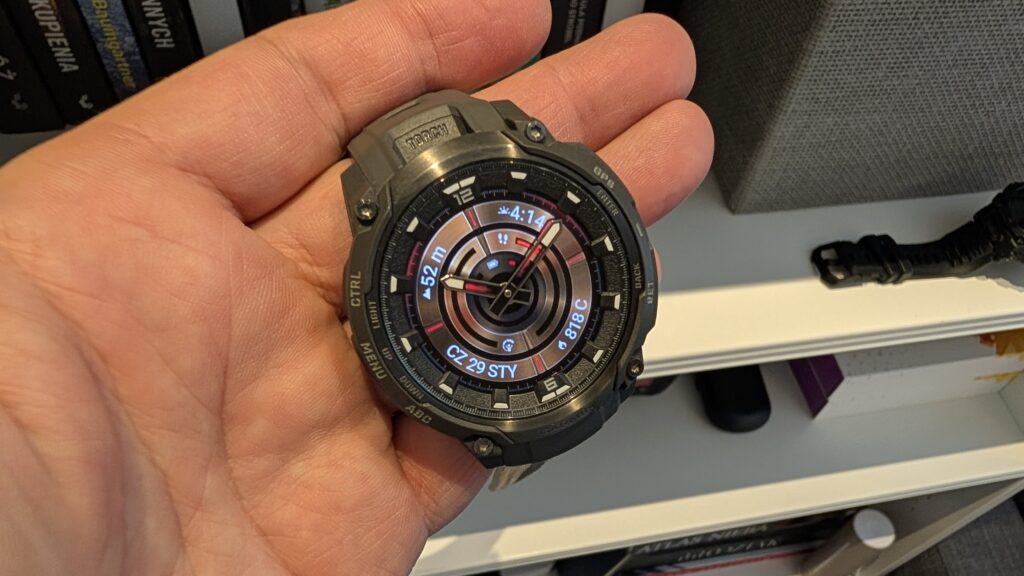 Najważniejszym punktem tego urządzenia jest bez wątpienia połączenie fizycznego świata z cyfrowym. Fizyczne wskazówki pokryte warstwą luminescencyjną Super-Luminova są doskonale widoczne nawet wtedy, gdy ekran jest wygaszony, co daje nam poczucie obcowania z tradycyjnym czasomierzem. Prawdziwa magia dzieje się jednak w momencie interakcji z menu, kiedy to technologia RevoDrive błyskawicznie przesuwa wskazówki do pozycji poziomej lub pionowej, aby nie zasłaniały one treści wyświetlanych na jaskrawym panelu AMOLED. Kontrast między fizycznym elementem a cyfrowym tłem o wysokiej rozdzielczości jest świetny i eliminuje problem czytelności w ciemnych pomieszczeniach. Ekran AMOLED sprawia, że interfejs jest ostry jak brzytwa, a kolory są nasycone, co w porównaniu do wyblakłych barw w konkurencyjnych zegarkach sportowych robi spore wrażenie.