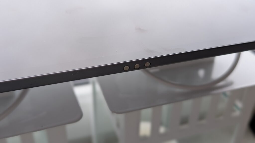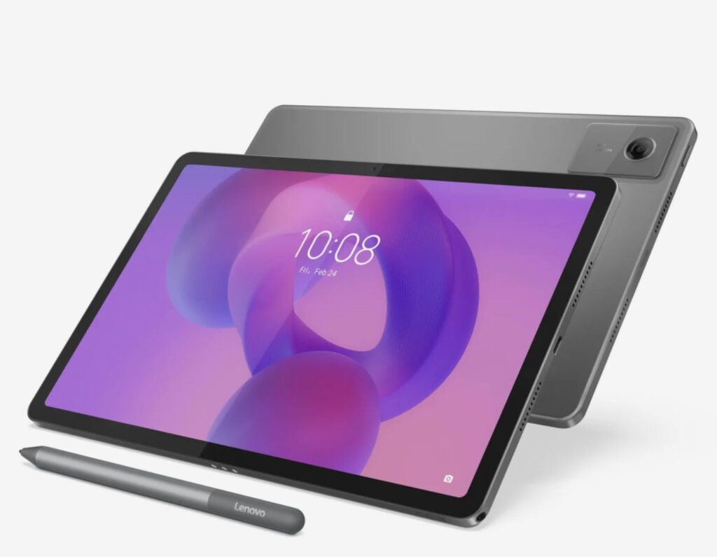 Nowoczesny tablet Lenovo Idea Tab prezentuje się minimalistycznie i elegancko, będąc jednocześnie urządzeniem o solidnej konstrukcji. Jego obudowa została wykonana z trwałego stopu aluminium, co nadaje mu wrażenie klasy premium, zapewnia sztywność konstrukcji oraz wspiera efektywne chłodzenie. Urządzenie jest wyjątkowo smukłe, a jego waga oscylująca w granicach 480 gramów czyni go wygodnym w transporcie. Ekran otaczają cienkie ramki, maksymalizujące przestrzeń roboczą, a tylna część ma gładki, czysty design z dyskretnie wkomponowanym aparatem. Jeśli chodzi o układ elementów funkcjonalnych, przyciski i gniazda są rozmieszczone ergonomicznie na krawędziach tabletu. Na jednej z krawędzi znajduje się przycisk zasilania. W pobliżu, na sąsiedniej krawędzi, umieszczono przyciski regulacji głośności. Za wysoką jakość dźwięku odpowiadają cztery głośniki z technologią Dolby Atmos, które są symetrycznie rozmieszczone na bocznych krawędziach. Kluczowym złączem do zasilania i komunikacji jest port USB Typu C, który wspiera szybkie ładowanie. Dodatkowo, na jednej z krawędzi znajduje się slot na kartę MicroSD, pozwalający na łatwą i tanią rozbudowę pamięci masowej. Co więcej, na dolnej krawędzi umieszczono magnetyczne złącze, służące do szybkiego i stabilnego podłączenia dedykowanej klawiatury.