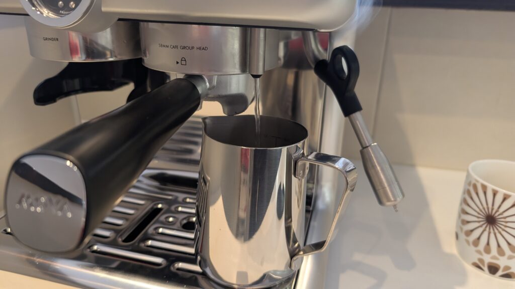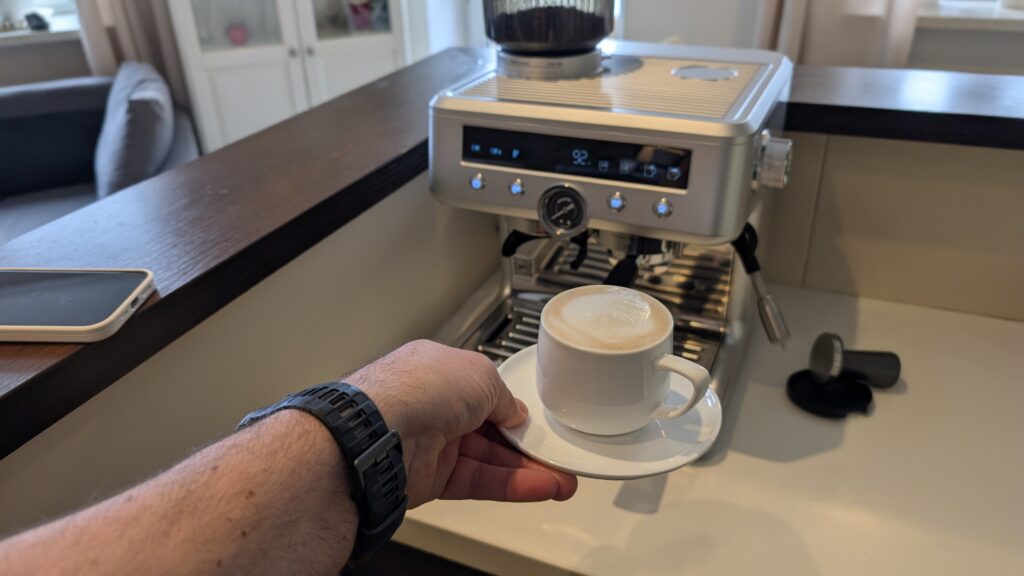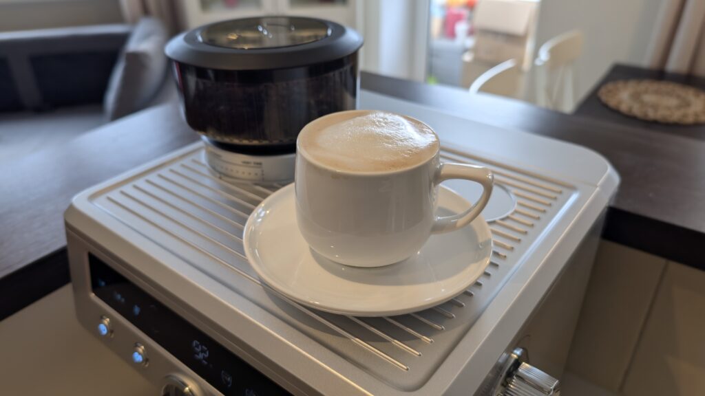 Mova S20 Pro, mimo że jest ekspresem, w którym możemy przygotować kawę na każdym etapie własnoręcznie, to ma też pewne procesy zautomatyzowane. Urządzenie potrafi zapamiętać nasze ulubione ustawienia, dzięki czemu nie będziemy musieli za każdym razem pamiętać o tym, żeby wyregulować temperaturę wody, mleka albo ilość kawy, wody lub mleka. Gdy metodą prób ustalimy już odpowiednią ilość kawy, długość mielenia i inne parametry, wtedy przygotowanie Espresso zajmuje niecałe 40 sekund. Wystarczy umieścić kolbę pod młynkiem, wcisnąć Espresso, zmielenie zajmuje 10 sekund, potem wystarczy umieścić kolbę pod głowicą zaparzającą, wcisnąć Espresso i po 20 sekundach kawka gotowa. Dodatkowe spienienie mleka np. do Cappuccino, zajmuje dosłownie chwilę. Wlewamy mleko do stalowego garnuszka, wciskamy na urządzeniu przycisk Pary, po 10 sekundach możemy odkręcić pokrętło z parą i umieścić garnuszek z kawą pod dyszą. Ta czynność nie powinna zająć nam dłużej niż 10 do 20 sekund. Następnie wystarczy wlać podgrzane mleko albo samą piankę albo to i to do filiżanki i kawka gotowa w niecałą minutę. Zatem czas przygotowania nie różni się znacząco od ekspresu automatycznego tyle, że w kolbowym wszystkie kroki wykonujemy ręcznie a w automatycznym same się dzieją po wciśnięciu jednego przycisku. Ale podkreślam, kawa z kolbowego daje 300 razy więcej możliwości ustawień, personalizacji napojów i moim zdaniem smakuje lepiej.