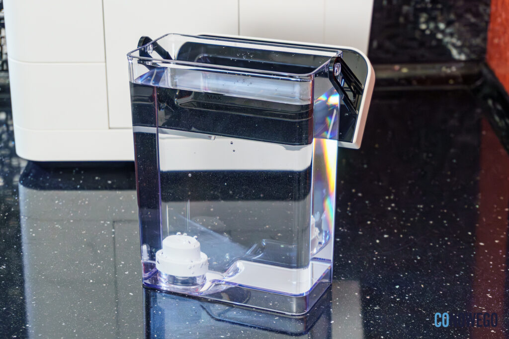 Nie można nie docenić tego, że ekspres Virtuoso 10 Pro automatycznie czyści zarówno ścieżki kawy, jak i system mleczny. W zależności od twardości wody może również przypomnieć o odkamienianiu, co również odbywa się automatycznie. Do przygotowywania napojów używam wody filtrowanej na wszelki wypadek – nie ma tu miejsca na wymienny filtr, tak jak w moim obecnym ekspresie.