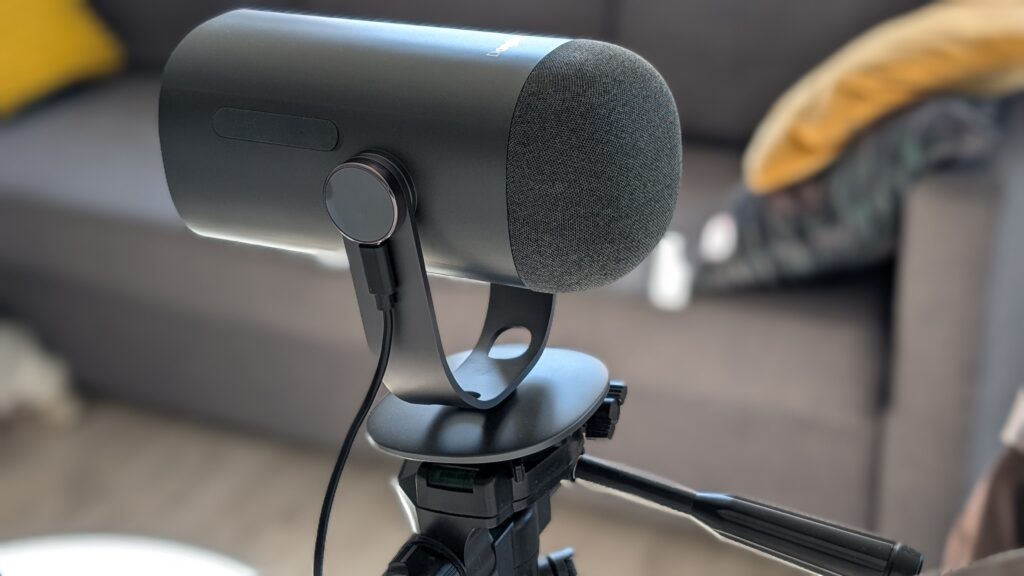 Projektor Dangbei Freedo ma wszystko, dosłownie wszystko, czego projektor kina domowego potrzebuje. Zaczynając od wyglądu, jest to kompaktowa konstrukcja zamknięta w obudowie wykonanej z dobrej jakości tworzywa sztucznego w kolorze grafitowym, która zajmuje ¾ długości. Pozostała część została wykończona maskownicą z materiału, który zdradza nam, że w tylnej części znajduje się głośnik. Cała konstrukcja jest osadzona na regulowanej stopce, dzięki której projektor możemy ustawić w dowolnym miejscu i odległości od ściany. Na obudowie nie znajdziemy przycisków, bo urządzenie ich nie potrzebuje. Do jego obsługi mamy jedynie pilota, a cała reszta dzieje się automatycznie. Projektor Dangbei Freedo jest w pełni zautomatyzowany pod każdym względem. Na lewym boku znajdziemy jedynie gumową zaślepkę, pod którą jest port HDMI, ale kto z tego skorzysta? Nie mam pojęcia, bo nie ma takiej potrzeby.
