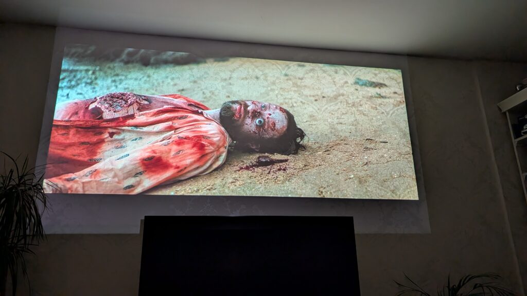 To co jest niesamowite w Dangbei Freedo to fakt, że projektor wystarczy postawić w dowolnym miejscu i odległości od ściany, uruchomić pilotem a cała reszta dzieje się sama. Nie ustawiamy ostrości, zoomu, trapezowania. On robi to wszystko sam, za każdym razem, gdy się uruchomi. Mało tego, niezależnie od tego pod jakim kątem ustawimy go względem ściany, on zawsze sam skoryguje obraz i wyświetli go poprawnie. Dzięki pełnej automatyzacji procesu kalibracji początkowej, wszystko, co musimy zrobić, to wcisnąć na pilocie przycisk zasilania. I tak właśnie powinien wyglądać każdy projektor.