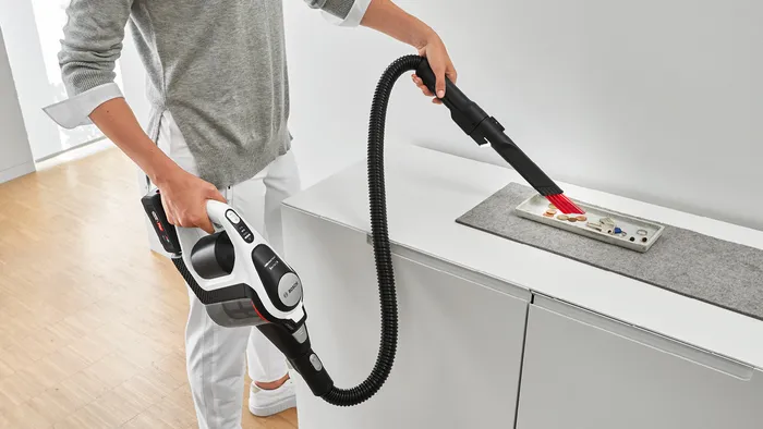 Dla mnie obowiązkowy jest elastyczny wąż do manewrowania końcówką wewnątrz szafek. Bosch ma w portfolio dyszę z rurkami (niestety trudno dostępną) dla serii Unlimited, którą można wciągnąć brud z szuflad. Dyson V16 Piston Animal z kolei ma w zestawie „pędzelek” do odkurzania powierzchni wyjątkowo delikatnych.