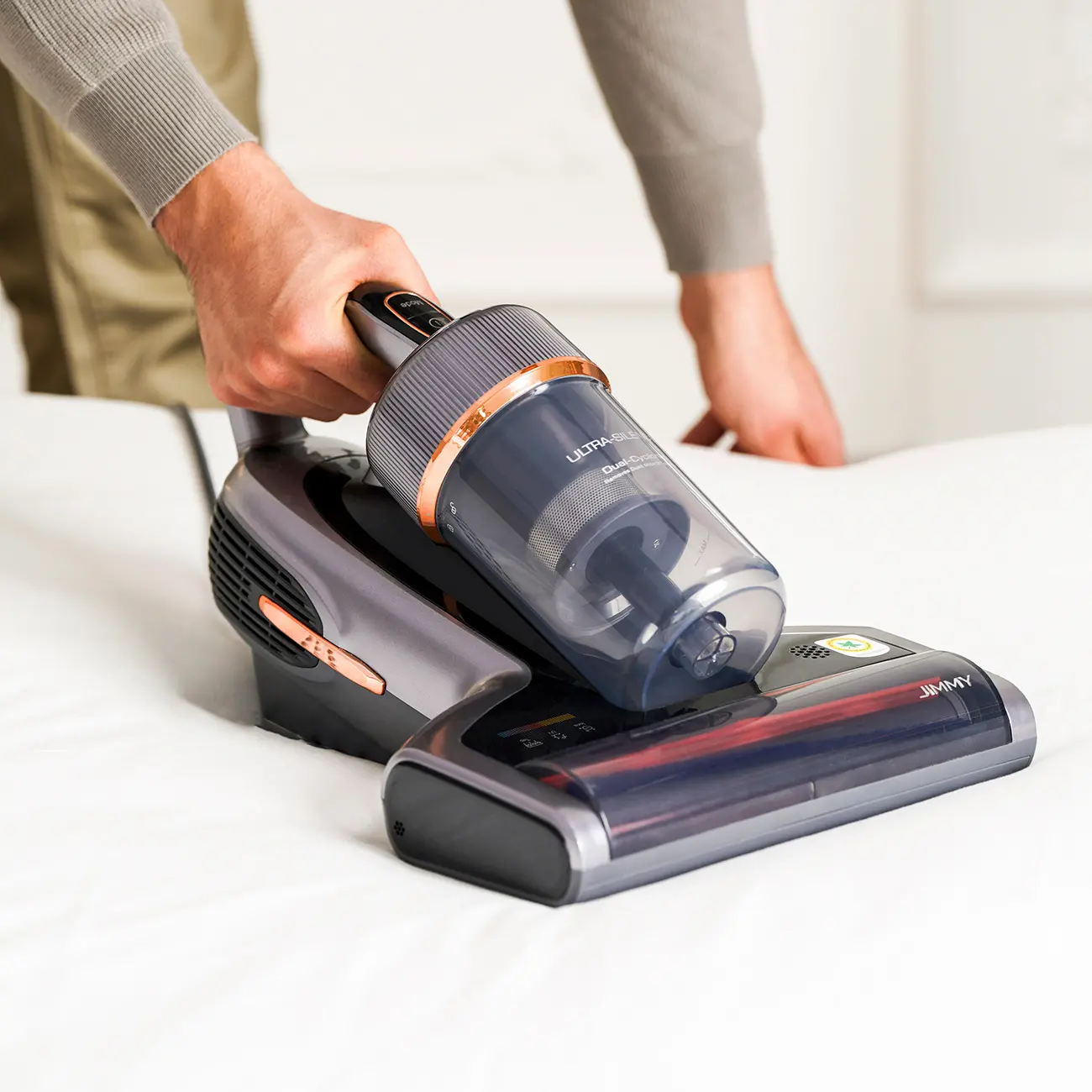 To rozwiązuje część problemu, ale wiele organizmów żywych wcale nie ma ochoty opuścić materaca. Jimmy BX7 Pro Max poradzi sobie z nimi dzięki sterylizującej lampie UV (wyłącza się po podniesieniu urządzenia, nie jest niebezpieczna) oraz strumieniowi powietrza o temperaturze 65°C. To nie tylko zabija bakterie, grzyby i roztocza, ale też suszy głębsze warstwy miękkich mebli, by utrudnić odbudowanie populacji.