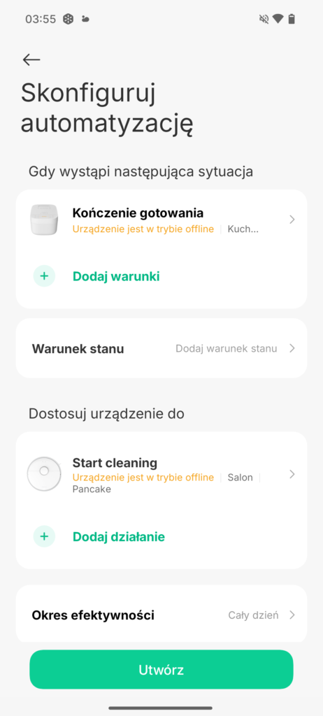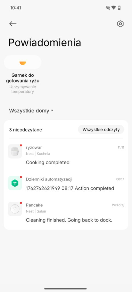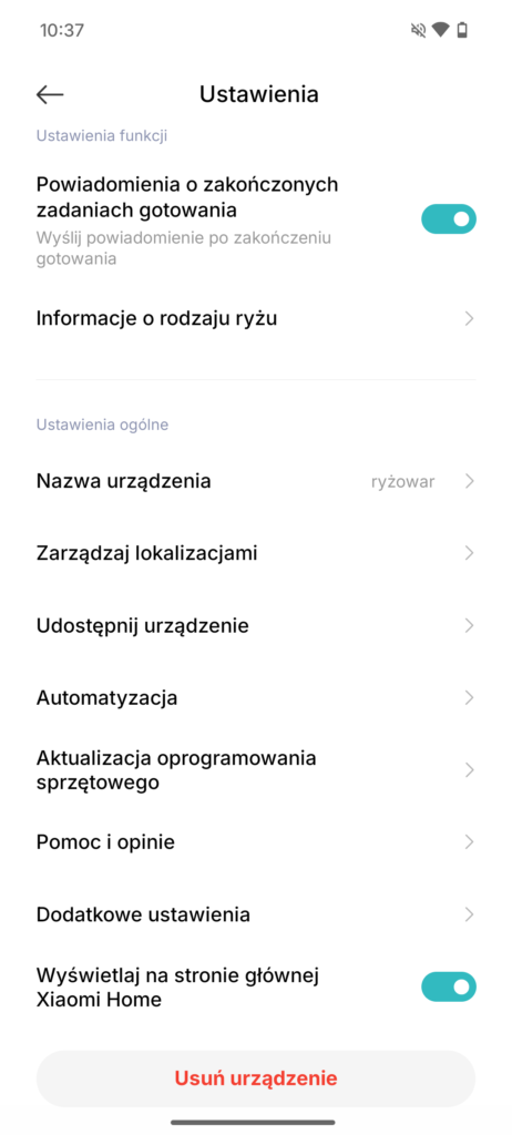 Apka może współpracować z asystentami głosowymi, ale małe AGD z zasady nie ma funkcji, które można w ten sposób obsłużyć (jeśli się mylę, daj mi znać). Inteligentny głośnik nie powie więc, o której godzinie można siadać do stołu. Dostępne są jednak powiadomienia na telefon i automatyzacja. Gdy ryżowar skończy pracę, można zapalić światło w jadalni. Włączenie robota sprzątającego przy starcie grzania też nie jest takie głupie.