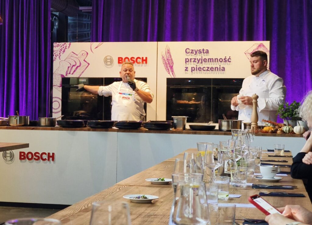 Na zdjęciu powyżej zaś widać, jak w jednym z piekarników Serie 2 HBA572BB4 dochodzi pieczona sarnina, w drugim zaś na wyższej półce powstają chrupiące dodatki z kumpiaka podlaskiego. Były nieco zaskakującym, ale doskonale wkomponowanym dodatkiem do żurku.