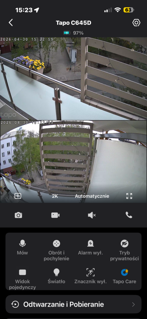 Nawet najlepsze na świecie parametry optyczne nie mają sensu, gdy kuleje oprogramowanie, ale aplikacja Tapo jest napisana świetnie i oferuje zaplecze funkcji bez żądania za nie dodatkowych opłat. Bezdyskusyjnym kilerem testowanego modelu jest tryb synchronicznego śledzenia. Górny obiektyw wyłapuje ruch w swoim szerokim kadrze, a dolna, zmotoryzowana głowica momentalnie otrzymuje współrzędne i podąża za celem, oferując przy tym cyfrowe przybliżenie rzędu 10.8x. Co więcej, wbudowane algorytmy sztucznej inteligencji działają w pełni lokalnie i bezbłędnie radzą sobie z kategoryzacją poruszających się obiektów, odróżniając ludzi od spacerujących psów czy wjeżdżających samochodów, co ucina falę fałszywych powiadomień push. Trzeba również mocno pochwalić producenta za zastosowanie dwupasmowego modułu Wi-Fi, pracującego w standardach 2.4 GHz oraz 5 GHz, co jest dużym krokiem naprzód w porównaniu do wielu urządzeń od Reolink czy wspomnianego Eufy, które wciąż kurczowo trzymają się mocno zaszumionego, starszego pasma, co nierzadko skutkuje powolnym wczytywaniem podglądu na żywo.