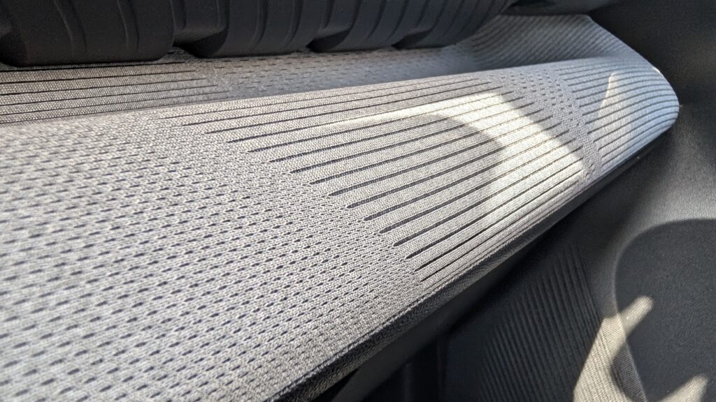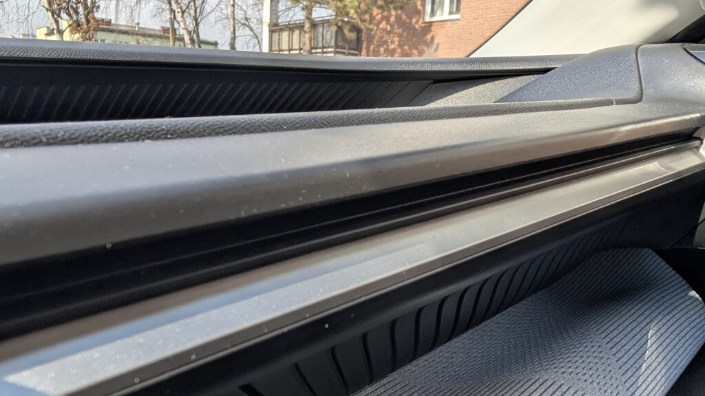 Francuzi zawsze potrafili w przytulne materiały i nie inaczej jest tym razem, choć od razu widać, że firmowi księgowi również mieli przy tym projekcie sporo do powiedzenia. Deska rozdzielcza w swoich wyższych i bardziej widocznych partiach została wykończona przyjemnym w dotyku materiałem tekstylnym, który przypomina luksusową, szarą kanapę z modnego salonu meblowego i zdecydowanie ociepla to nieco surowe i futurystyczne wnętrze. Kierownica z kolei obszyta jest sztuczną, ale bardzo przyzwoitej jakości skórą, która nie ślizga się w dłoniach nawet wtedy, gdy nerwowo próbujecie zmieścić się w lukę przed ruszającym autobusem. Jednak największym, absolutnym hitem tej kabiny są legendarne już fotele Advanced Comfort, pokryte niesamowicie miękką, materiałową tapicerką, która po prostu połyka was w całości i sprawia, że macie ochotę odkręcić te siedzenia i zabrać je do własnego domu.