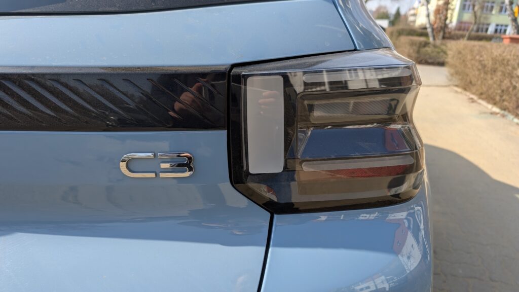 Zacznijmy od tego, że ten samochód ostatecznie pożegnał się z sylwetką grzecznego, miejskiego bąbelka i przybrał formę mikroczołgu, nosząc na froncie zupełnie nowe, owalne logo marki. Przód wita nas potężną, niemal pionową maską i reflektorami, które ze swoimi trójwymiarowymi sygnaturami świetlnymi wyglądają niczym wkurzony Transformer po porannej jatce. Z profilu to już rasowy crossover, prężący czarne, plastikowe nakładki na nadkola i muskularne przetłoczenia, które dodają mu optycznej wagi, choć w rzeczywistości to wciąż bardzo zwinne auto. Z tyłu sprawa wygląda równie bojowo dzięki kanciastym lampom złączonym masywną listwą, co sprawia, że wóz wydaje się szerszy, niż jest w rzeczywistości. Jeśli chodzi o suchą matematykę, to ten C3 mierzy dokładnie 4015 milimetrów długości, 1755 milimetrów szerokości oraz 1577 milimetrów wysokości.