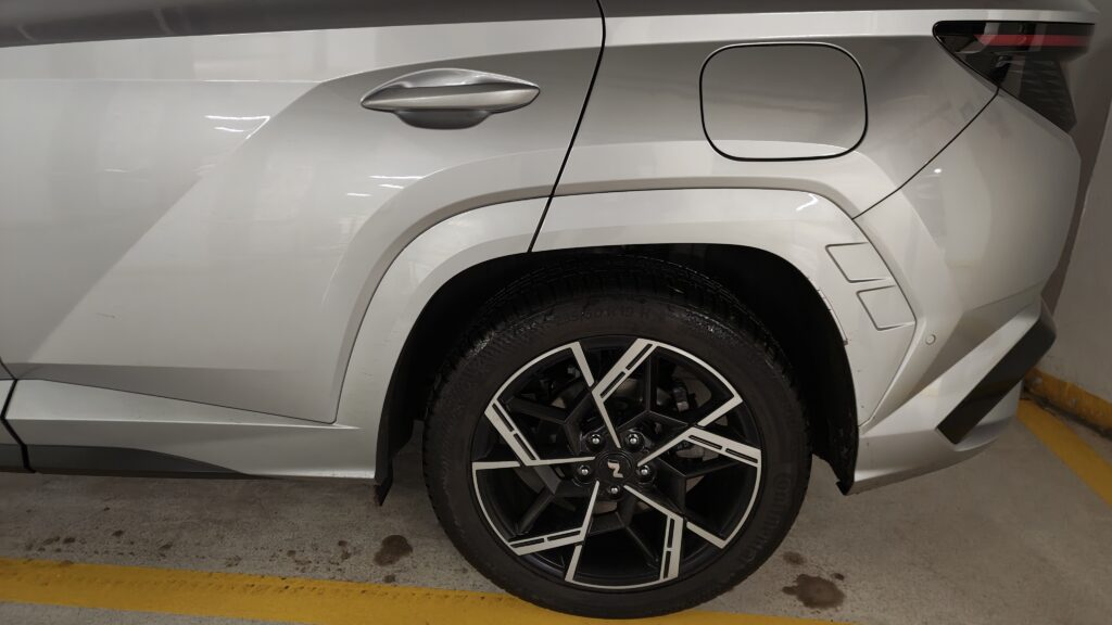 W trasie Tucson pokazuje swoje drugie oblicze, stając się stabilnym i pewnym krążownikiem, który dzięki napędowi na cztery koła zachowuje przyczepność w każdych warunkach pogodowych. Wyprzedzanie tirów czy dynamiczna jazda autostradą nie sprawiają mu żadnych trudności dzięki zapasowi mocy 265 KM. Jeśli chodzi o spalanie, jest ono uzależnione od stanu naładowania baterii: w mieście przy pełnym akumulatorze możemy uzyskać wynik 0 l/100 km, korzystając tylko z prądu na dystansie około 50 km. Gdy prąd się skończy, auto działa jak klasyczna hybryda, zużywając w mieście około 6-7 litrów benzyny, natomiast w trasie przy prędkościach autostradowych spalanie oscyluje w granicach 8-9 litrów na 100 km, co jest bardzo przyzwoitym wynikiem jak na tak mocnego SUV-a z napędem 4×4.