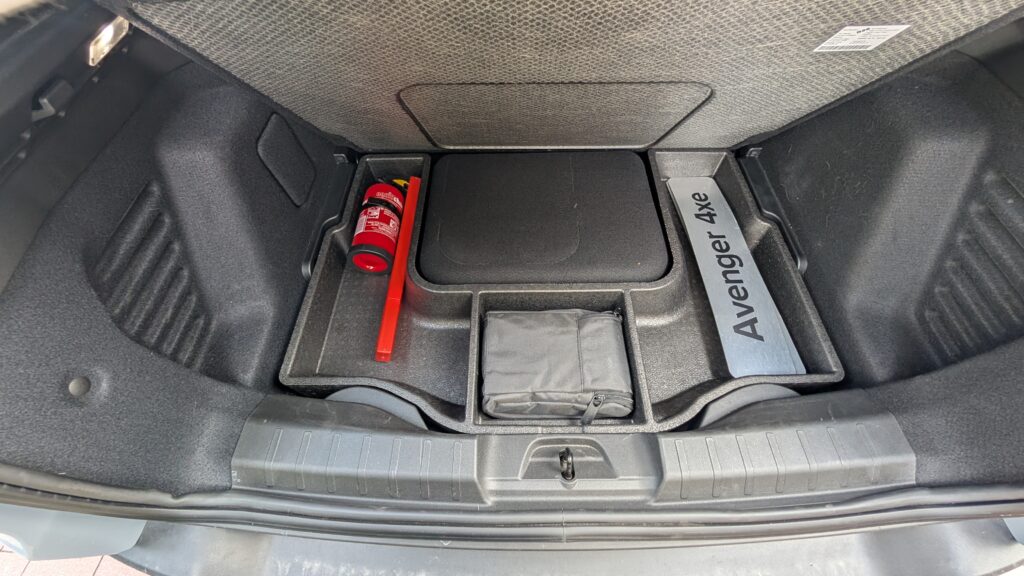 Sercem tej edycji jest układ mikrohybrydowy (mHEV) 4xe o systemowej mocy 145 KM i maksymalnym momencie obrotowym 230 Nm. Napęd na wszystkie koła realizowany jest bez wału napędowego, gdzie tylna oś jest zasilana przez jeden z dwóch silników elektrycznych (każdy o mocy 28 KM). Samochód posiada 6-biegową automatyczną skrzynię biegów e-DCT. W większości przypadków mały Jeep pozostaje autem przednionapędowym, co ma na celu większą oszczędność paliwa. Napęd na cztery koła jest stały, z podziałem 50:50 na przód i tył, przy niskiej prędkości (do 30 km/h), aktywuje się na żądanie przy średnich prędkościach, a powyżej 90 km/h tylny silnik elektryczny odłącza się, minimalizując zużycie paliwa. Kierowca ma do wyboru kilka trybów jazdy – w trybie Auto napęd 4×4 jest włączany tylko w razie potrzeby. Osiągi są zadowalające: przyspieszenie od 0 do 100 km/h zajmuje 9,5 sekundy, a prędkość maksymalna wynosi 194 km/h. Deklarowane średnie zużycie paliwa to obiecujące 5,4 l/100 km, chociaż w warunkach miejskich bywa wyższe i rzadko spada poniżej 7,5 l/100 km. Dzięki zmianom w konstrukcji Avenger 4xe zapewnia 400 mm głębokości brodzenia, co jest znaczącym atutem w terenie.