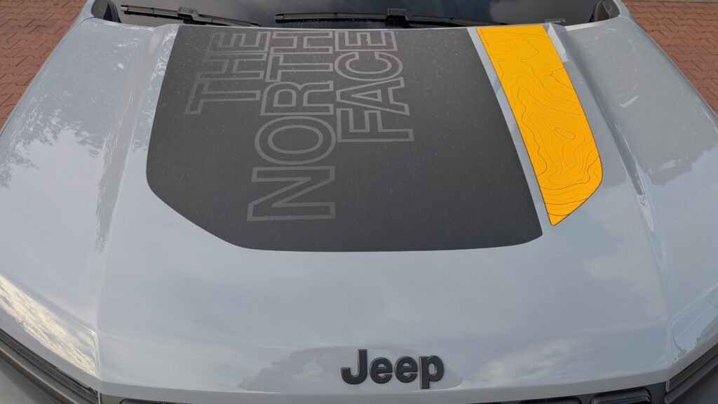 Avenger w edycji The North Face zdecydowanie nabrał bardziej bojowego wyglądu, wyróżniając się na tle standardowych wersji. Samochód można zamówić w trzech kolorach: Storm, Volcano lub Snow, z kontrastującymi akcentami w kolorze Summit Gold, a opcjonalnie dostępny jest także czarny dach. Zmiany stylistyczne są liczne i dopracowane, obejmując unikalny grill z topograficznymi wzorami i połyskującymi czarnymi pierścieniami oraz matową naklejkę na masce. Na nadwoziu widoczne są również akcenty w kolorze Summit Gold oraz 17-calowe aluminiowe felgi w czarnym wykończeniu ze złotymi napisami „Jeep”. Edycja specjalna otrzymała także mocniejsze zderzaki, relingi dachowe i zaczep holowniczy, a w standardzie wyposażona jest w opony M+S, z opcją wyboru solidnych opon terenowych AT.
