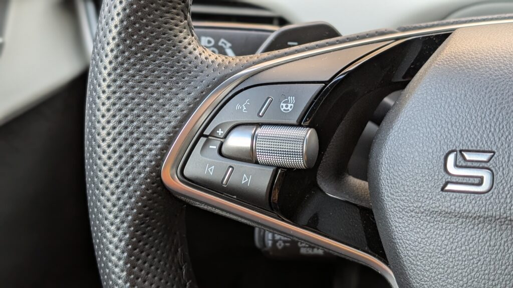Skoda Elroq pokazuje nam, na co ją stać. Odczuwalny komfort to nie tylko zasługa tego, że mamy mnóstwo miejsca, ale przede wszystkim perfekcyjnie zestrojenego zawieszenia. Mamy wrażenie, że unosimy się nad drogą, bo Elroq pochłania nierówności z taką gracją, że po prostu ich nie czujemy! Do tego dochodzi precyzyjny układ kierowniczy, który daje nam pełną kontrolę i poczucie absolutnej pewności na zakrętach. To jest przepis na czystą przyjemność z jazdy bo czujemy się z autem jednością. Prawdziwa wisienka na torcie to jednak ta błoga cisza. Elektryczny napęd sam w sobie jest cichy, ale doskonała izolacja kabiny sprawia, że w środku panuje niezwykle relaksujące środowisko. Możemy w spokoju słuchać ulubionej muzyki lub po prostu cieszyć się rozmową, bez niepotrzebnego hałasu z zewnątrz.