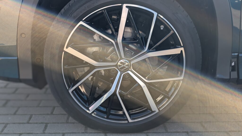 Wersja R-Line Plus nadaje Tayronowi sportowego charakteru. Wyróżniają ją przede wszystkim imponujące, 20-calowe felgi aluminiowe „Leeds” oraz elektrycznie otwierany dach panoramiczny, które wraz z pakietami stylistycznymi tworzą niezwykle atrakcyjną całość. Trzeba jednak pamiętać, że uroda wymaga poświęceń. Zastosowanie tak dużych obręczy w połączeniu z oponami o niskim profilu bezpośrednio przekłada się na odczuwalne obniżenie komfortu jazdy na nierównościach. Jest to świadomy wybór dla kierowców, dla których wygląd i maksymalne wyposażenie są priorytetem, nawet kosztem części wszechstronności na drogach gorszej jakości.