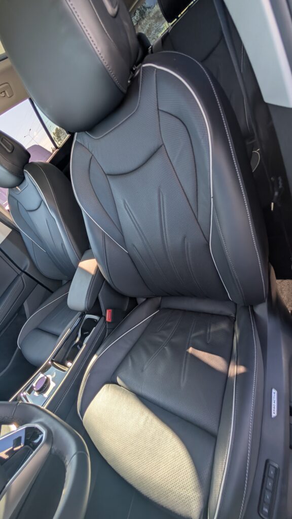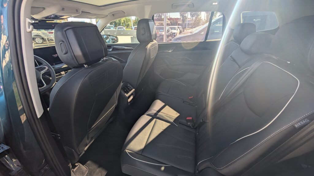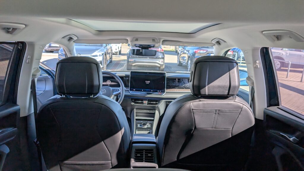 Wnętrze Tayrona R-Line Plus to popis przestronności i inteligentnych rozwiązań. Fotele ergoActive zapewniają fenomenalny komfort nawet podczas wielogodzinnych podróży. Są w pełni elektryczne podgrzewane i z najlepszym masażem jaki miałem okazję w samochodach doświadczyć. Masujące kule nie tylko muskają nas po plecach, ale mocno wwiercają się dając prawdziwą ulgę. Dużym atutem jest jednak regulowana wzdłużnie tylna kanapa z możliwością zmiany kąta pochylenia oparcia. To rozwiązanie, które pozwala elastycznie zarządzać przestrzenią, powiększając imponujący bagażnik (od 885 litrów w wersji 5-osobowej) lub oferując więcej miejsca na nogi pasażerom. Należy przy tym pamiętać, że decyzja o wersji 7-osobowej wiąże się ze stałym przesunięciem drugiego rzędu siedzeń do przodu, co trwale ogranicza komfort podróżujących tam osób.