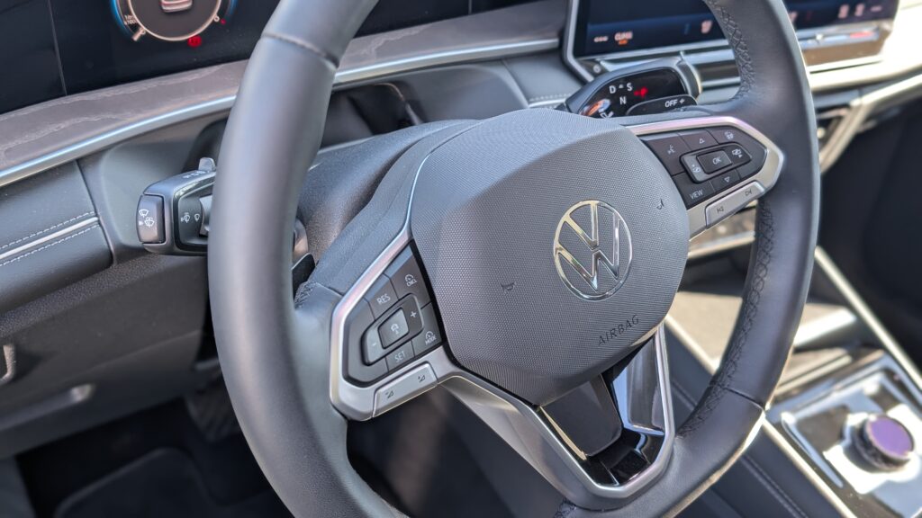 Nowy Volkswagen Tayron wkracza na rynek jako bezpośredni następca lubianego Tiguana Allspace, celując w potrzeby kierowców i rodzin poszukujących przestronnego, funkcjonalnego i nowoczesnego SUV-a. Jako pojazd stworzony do pokonywania długich dystansów i oferujący opcjonalny trzeci rząd siedzeń, Tayron w wersji R-Line Plus z silnikiem Diesla 2.0 TDI o mocy 193 KM jest propozycją dla tych, którzy oczekują od samochodu czegoś więcej niż tylko miejskiej prezencji. To dojrzała konstrukcja, która łączy praktyczność z zaawansowaną technologią, choć nie jest wolna od pewnych kompromisów. Nowa linia VW zafundowała nam iście futurystyczne wnętrza i rozwiązania. O ile lubimy i doceniamy przycisku dotykowe, wielkie ekrany multimedialne, to jako kierowcy nie przepadamy za zlikwidowaniem analogowych przełączników i pokręteł. W niektórych modelach VW nawet nawiewami steruje się z poziomu tableta i nie ma możliwości zrobienia tego ręcznie. Oczywiście nie jest to wygodna ani intuicyjne i pozostaje nam tylko mieć nadzieje, że VW szybko wycofa się z tego. Chcociaż może już nawet zaczął bo w nowym Tayronie nie można narzekać na brak przełączników analogowych. To jest właśnie ten krok wstecz, o którym wspomniałem, tyle tylko, że w tym wypadku to bardzo dobry i pozytywny krok wstecz.