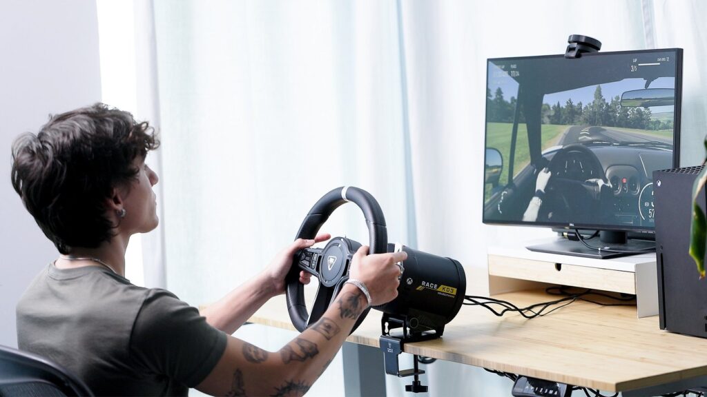 Turtle Beach VelocityOne Race to kierownica wyścigowa klasy premium, która będzie imponującym prezentem dla miłośników symulatorów i realistycznych wrażeń z jazdy. Zestaw zaprojektowano z myślą o maksymalnej immersji, oferując solidną bazę z bezpośrednim napędem, precyzyjne sprzężenie zwrotne i wyraźne odwzorowanie zachowania samochodu na torze. Kierownica zapewnia szeroki zakres regulacji oraz ergonomiczny kształt, dzięki czemu dobrze sprawdza się zarówno podczas krótkich sesji, jak i wielogodzinnych wyścigów. Dużym atutem jest rozbudowany panel sterowania z wyświetlaczem oraz programowalnymi przyciskami, który umożliwia szybki dostęp do ustawień i telemetrii bez odrywania wzroku od trasy. Wysokiej jakości materiały, metalowe łopatki zmiany biegów i realistyczne pedały podnoszą poczucie kontroli nad pojazdem, a kompatybilność z popularnymi platformami sprawia, że VelocityOne Race jest wszechstronnym wyborem dla wymagających graczy. To prezent, który potrafi zamienić domowe stanowisko w prawdziwy kokpit wyścigowy.