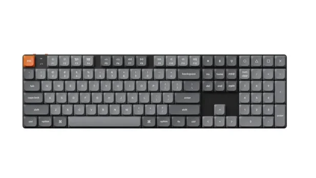 Klawiatura Keychron K5 Max H3 to model zaprojektowany z myślą o maksymalnej wygodzie i elastyczności pracy. Jej ultracienka konstrukcja łączy aluminiowy korpus z niskoprofilowymi przełącznikami, które są aż o 1/3 niższe od standardowych. Dzięki temu pisanie staje się szybsze i bardziej naturalne. Całość zachowuje pełnowymiarowy układ 100%. Klawiatura oferuje trzy tryby łączności: przewodowy USB-C, Bluetooth 5.1 oraz stabilne połączenie 2,4 GHz z częstotliwością odpytywania 1000 Hz, co docenią zarówno użytkownicy biurowi, jak i gracze.