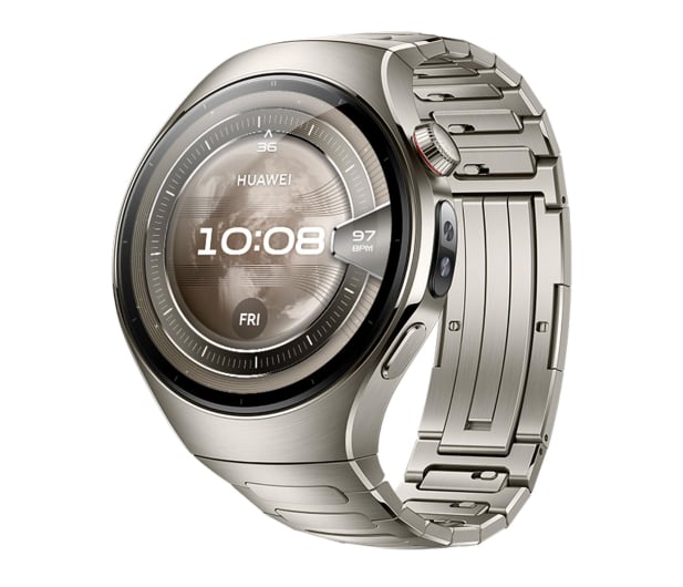 Huawei Watch 5 Elite to stylowy smartwatch, który stawia zarówno na zaawansowane funkcje, jak i na cieszące oko, wręcz biżuteryjne wzornictwo. Producent zastosował tutaj ekran AMOLED o przekątnej 1,5″ i rozdzielczości 466 x 466 px. Koperta zegarka została wykonana z tytanu, a ekran chroniony jest szkłem szafirowym. Ponadto producent uszczelnił ją do 5 ATM oraz uczynił zgodną z certyfikatem IP69K.