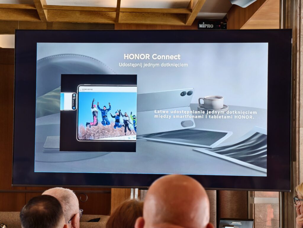 Duże zainteresowanie wzbudziła także funkcja HONOR Connect, umożliwiająca współpracę z urządzeniami Apple. Tablet może działać jako dodatkowy ekran dla komputerów Mac, a użytkownicy iPhone’ów i iPadów zyskują możliwość szybkiego przesyłania treści między ekosystemami. To rzadko spotykane podejście w świecie Androida i jeden z bardziej odważnych ruchów HONOR-a.