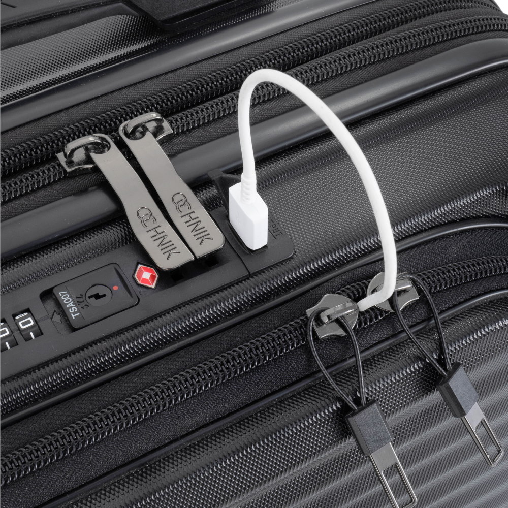 W podróży dostęp do energii jest równie ważny jak sam bagaż. OCHNIK dobrze to rozumie, dlatego w omawianej walizce zastosowano dedykowane wejście na powerbank. Pozwala ono ładować telefon czy inne urządzenia bez otwierania komory głównej. To rozwiązanie szczególnie przydatne podczas dłuższych przesiadek, gdy musisz pozostać online albo w sytuacjach, gdy po prostu nie ma czasu szukać gniazdka. Wystarczy podłączyć kabel, odłożyć telefon na miejsce i iść dalej, nie martwiąc się o stan baterii. To drobny element, który realnie zwiększa komfort podróży.