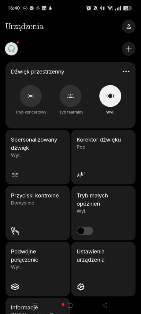 Nie jest jednak idealnie. Osoby, które lubią bardziej neutralne, studyjne granie, mogą uznać możliwości CMF Headphone Pro za niewystarczające. Brakuje też trochę przestrzenności, którą obiecują marketingowe hasła – efekt jest raczej subtelny niż spektakularny. Ale mimo tych niuansów, w codziennym słuchaniu to bardzo przyjemne, muzykalne brzmienie, które nie męczy nawet po kilku godzinach. W tej cenie trudno wymagać więcej.