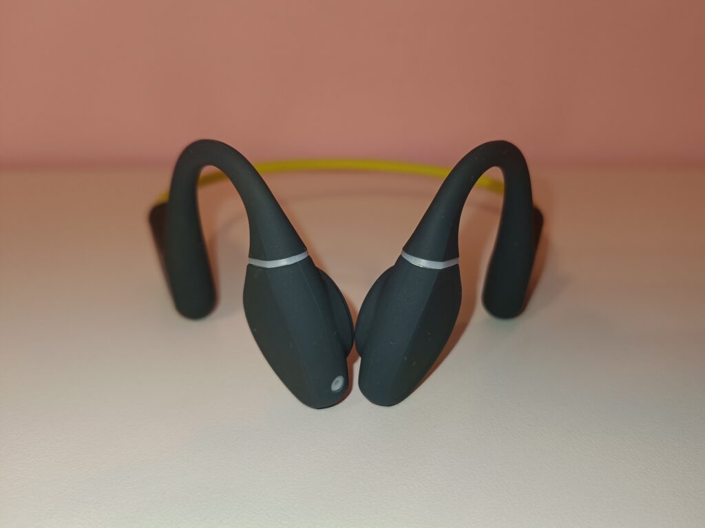 Jeśli chodzi o jakość wykonania, tutaj również jest całkiem nieźle. Pałąk słuchawek zapamiętuje kształt głowy użytkownika, a dzięki elastycznej konstrukcji można wyginać go bez obaw o uszkodzenie. Obudowy transduktorów pokryto miękkim, silikonowym materiałem, dzięki czemu nie podrażniają skóry, nawet gdy użytkownikowi zdarzy się nosić słuchawki przez dłuższy czas. Trzeba jednak przyznać, że taka lekka konstrukcja ma też swoje minusy – przy intensywnym ruchu potrafi się lekko przesunąć, więc czasem trzeba poprawić ich pozycję. Ochrona przed potem i deszczem jest tu zapewniona dzięki certyfikatowi IPX5, co wystarczy do biegania w deszczu. Nie polecam jednak korzystania z tych słuchawek w bardziej ekstremalnych warunkach. Istnieje uzasadniona obawa, że mogłyny ulec uszkodzeniu