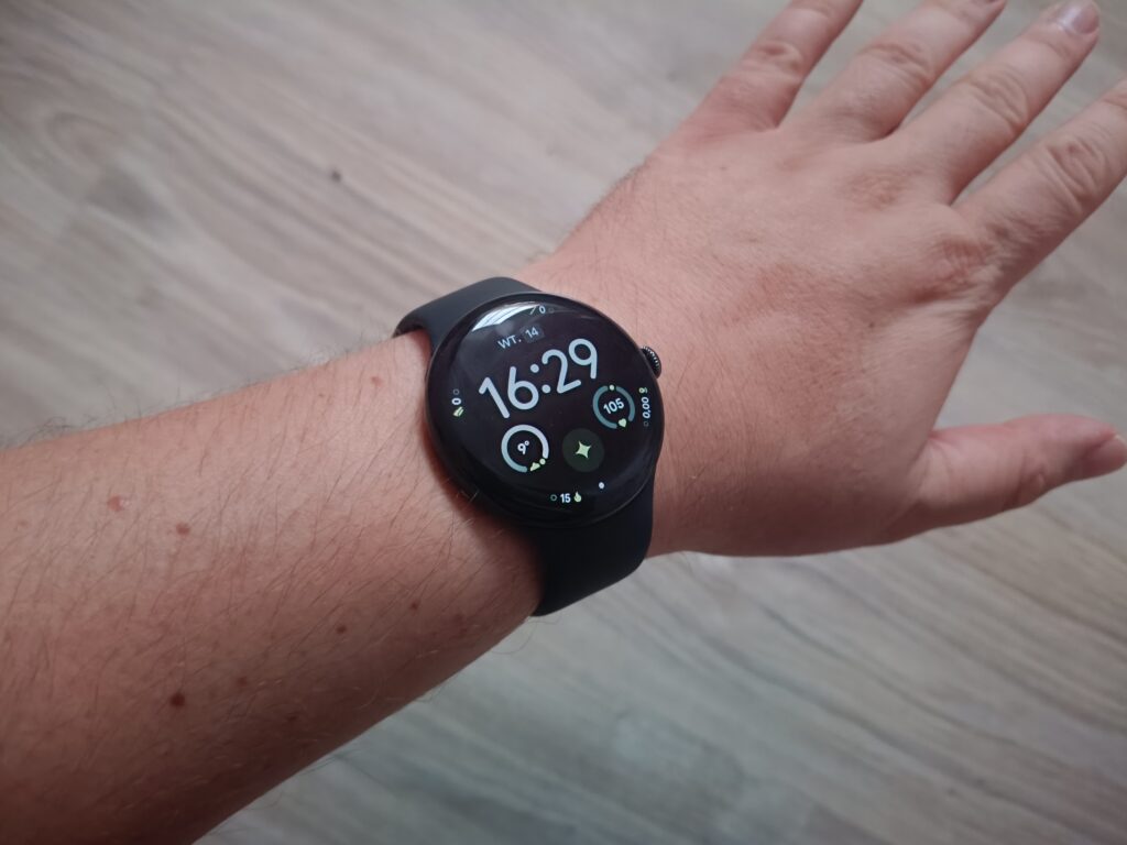 Dużą przyjemność sprawia też korzystanie z zegarka podczas codziennych zajęć. Można na nim szybko sprawdzić pogodę, zapłacić zbliżeniowo, przełączyć utwór na Spotify czy sprawdzić kalendarz – wszystko bez wyciągania telefonu z kieszeni. Co ciekawe, mikrofon i głośnik w Pixel Watch 4 są na tyle dobre, że prowadzenie krótkich rozmów telefonicznych nie stanowi problemu. Głos jest czysty, a zasięg Bluetooth stabilny nawet wtedy, gdy telefon leży w drugim pokoju. To naprawdę wygodne rozwiązanie, które szybko staje się nawykiem.