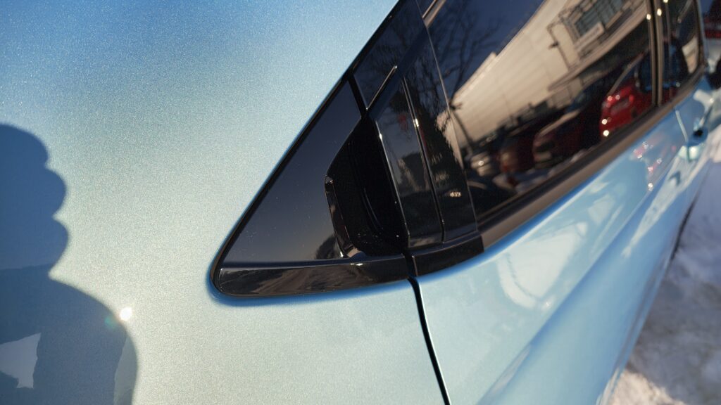 Wygląd zewnętrzny Hondy e:Ny1 to mieszanka minimalizmu z nowoczesnymi detalami, które odróżniają ją od spalinowych odpowiedników. Przód pojazdu charakteryzuje się pełną, gładką osłoną w miejscu tradycyjnego grilla, pod którą sprytnie ukryto gniazdo ładowania, a centralnie umieszczone, logo marki podkreśla jej elektryczny charakter. Boki samochodu prezentują czystą linię z niemal niewidocznymi klamkami tylnych drzwi ukrytymi w słupku C, co nadaje autu dynamiki przypominającej nadwozie typu coupé. Natomiast tył wieńczy elegancki pas świetlny LED przebiegający przez całą szerokość klapy oraz nowy, stylowy napis „Honda” zamiast tradycyjnego emblematu. Pod względem wymiarów auto mierzy 4387 mm długości, 1790 mm szerokości oraz 1584 mm wysokości przy rozstawie osi wynoszącym 2607 mm. W porównaniu do poprzedniej wersji spalinowej, e:Ny1 zyskało nieco inne zderzaki, nowe wzory 18-calowych felg oraz charakterystyczne białe akcenty, które są znakiem rozpoznawczym nowej, elektrycznej tożsamości marki.