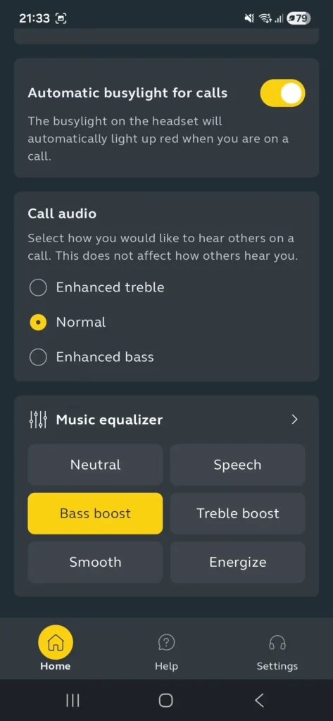 Największą zaletą aplikacji jest jej stabilność. Zmiany ustawień są wprowadzane natychmiast, bez opóźnień czy problemów z synchronizacją. To szczególnie ważne w środowisku pracy, gdzie sprzęt ma po prostu działać, a nie wymagać ciągłej uwagi. Możliwość aktualizacji firmware’u bezpośrednio z poziomu aplikacji również zasługuje na pochwałę, ponieważ pozwala utrzymać słuchawki w aktualnym stanie bez dodatkowych narzędzi.