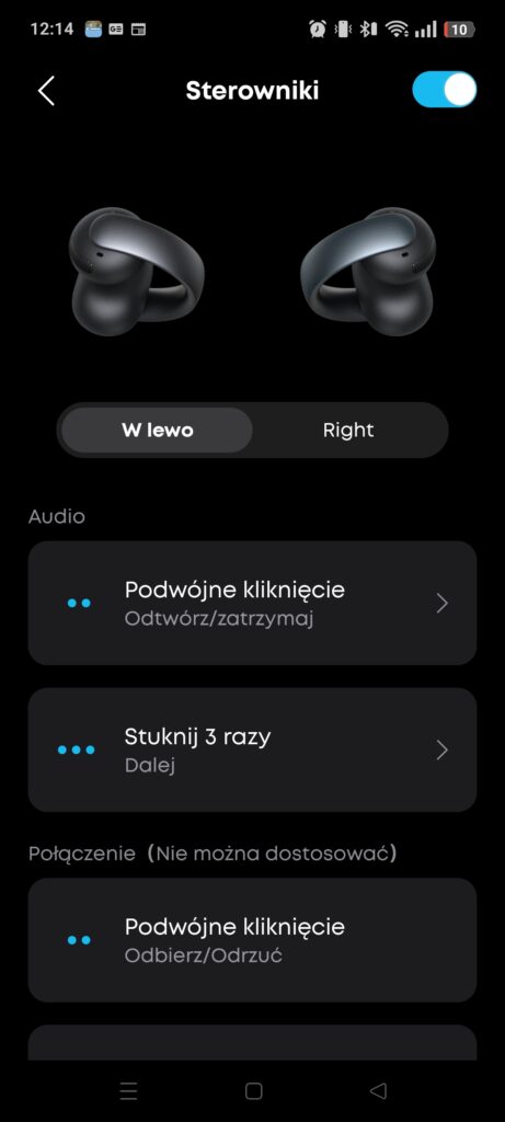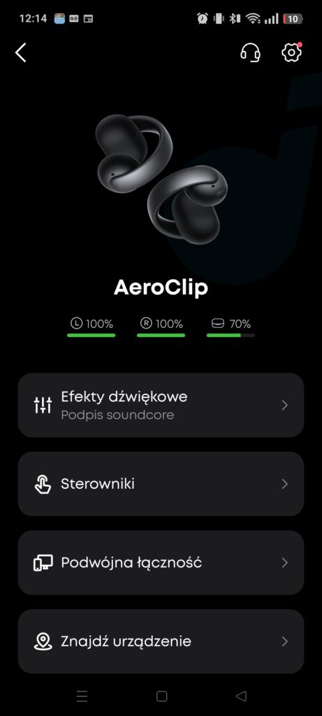 Ważną rolę odgrywa aplikacja Soundcore. Pozwala ona na personalizację działania słuchawek AeroClip. Można przypisać konkretne funkcje do gestów, dostosować ustawienia dźwięku korzystając m.in. z gotowych presetów, a także sprawdzić aktualny poziom naładowania baterii każdej słuchawki. Aplikacja jest więc kompletnym centrum dowodzenia dla użytkownika. Byłbym zapomniał – mamy tu wsparcie dla połączenia wielopunktowego – możemy więc wygodnie przełączać się między słuchaniem muzyki z laptopa, a odbieraniem połączeń ze smartfona.