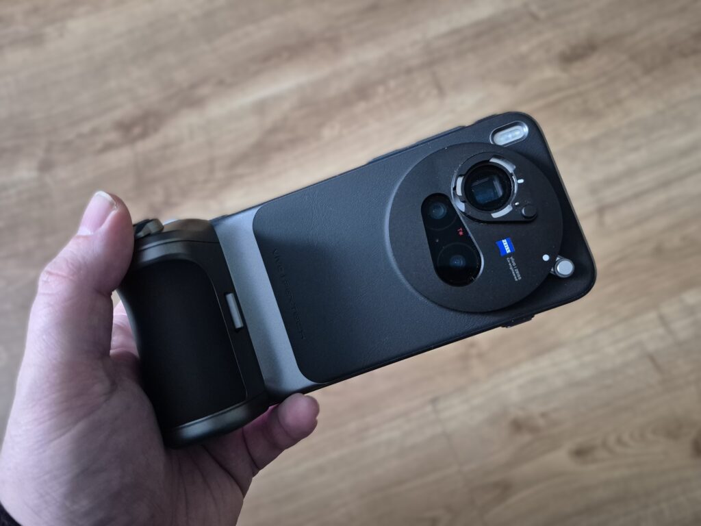 Proces montażu Photography Kit do smartfona nie jest skomplikowany, ale wymaga chwili uwagi, zwłaszcza przy pierwszym podejściu. Etui oraz grip są idealnie dopasowane do konstrukcji telefonu, dzięki czemu po założeniu wszystko trzyma się stabilnie i nie sprawia wrażenia prowizorycznego rozwiązania. Obiektyw ZEISS montowany za pomocą adaptera również siedzi pewnie i nie wykazuje luzów, co jest kluczowe przy fotografowaniu „z ręki”. Całość została zaprojektowana w taki sposób, aby użytkownik miał poczucie obcowania z jednym, spójnym urządzeniem, a nie zestawem połączonych ze sobą akcesoriów.