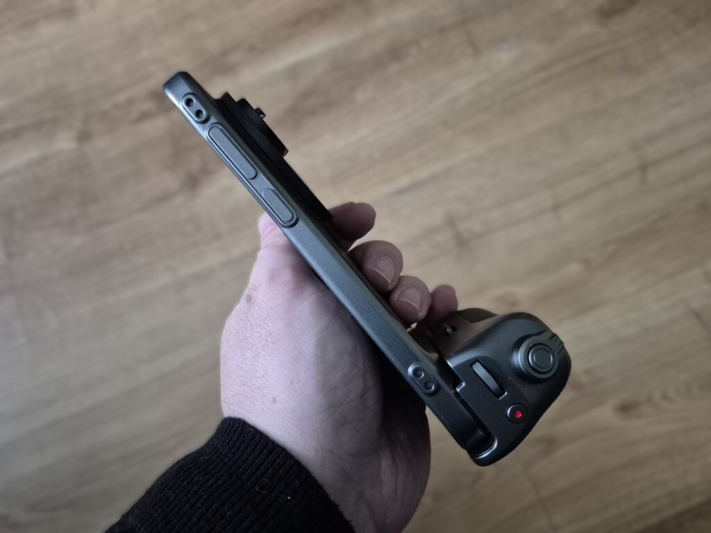 Integracja z telefonem wypada bardzo dobrze, choć nie jest całkowicie bezobsługowa. Photography Kit wymaga świadomego przejścia w dedykowany tryb pracy – to nie jest dodatek, który zakłada się na stałe i zapomina o jego obecności. Z jednej strony daje to dużą elastyczność i pozwala korzystać z telefonu w klasyczny sposób, gdy zestaw nie jest potrzebny. Z drugiej strony każdorazowy montaż i demontaż może z czasem stać się uciążliwy dla użytkowników, którzy często przełączają się między fotografowaniem a codziennym korzystaniem ze smartfona. To kolejny przykład kompromisu, w którym funkcjonalność wygrywa z absolutną wygodą.