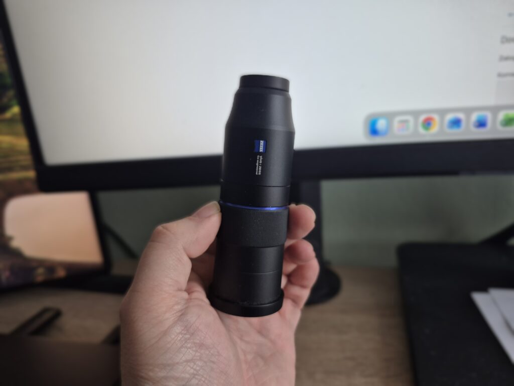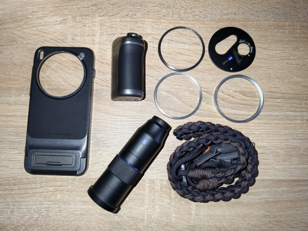 Istotnym elementem zestawu jest dołączony obiektyw ZEISS. Jego montaż pozwala uzyskać większe przybliżenie, co przekłada się na lepszą szczegółowość zdjęć w porównaniu do wykorzystania samego telefonu. W praktyce obiektyw najlepiej sprawdza się w dobrym świetle, gdzie łatwiej zachować ostrość i uniknąć spadków jakości na krawędziach kadru. Trzeba jednak pamiętać, że to wciąż rozwiązanie kompromisowe – wymaga precyzyjnego kadrowania i pewnej ręki, a jego potencjał ujawnia się głównie wtedy, gdy użytkownik świadomie kontroluje parametry zdjęcia.